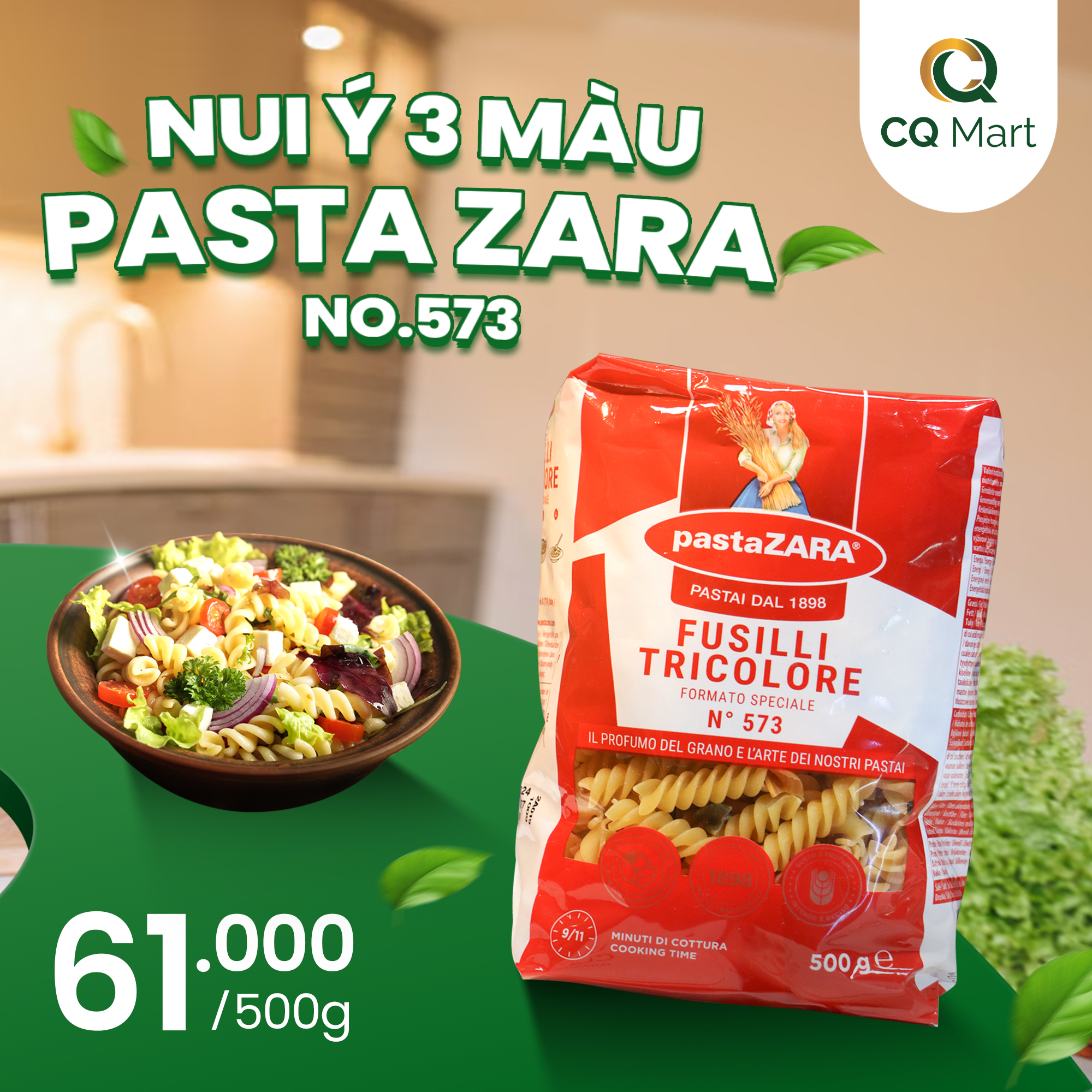 Đổi vị cho thực đơn gia đình có nui Ý 3 màu Pasta Zara – sản phẩm nhập cảng hàng hiệu mang mặt tại CQ Mart. không chỉ đẹp mắt có ba màu xanh – đỏ – vàng ngẫu nhiên, dòng nui này còn giàu protein, ít béo, mang lại bữa ăn cân bằng và đa dạng hứng khởi.